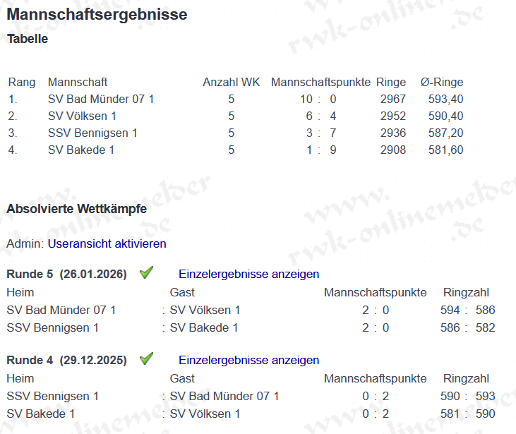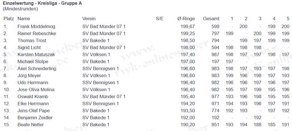 Bei den Rundenwettkämpfen starteten insgesamt 8 Mannschaften und in den Disziplinen „KK-Auflage“ und „LG-Auflage“ in der Bezirksliga.