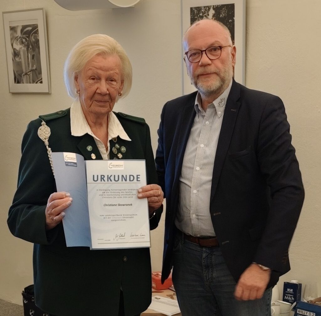 Im Rahmen der Ehrungen verlieh Carsten Elges (RSB) Christiane Skowranek und Stephan Herrmann die „silberne Ehrennadel“ des Regionssportbundes Hannover für 15 Jahre Vorstandsarbeit im Amt.
